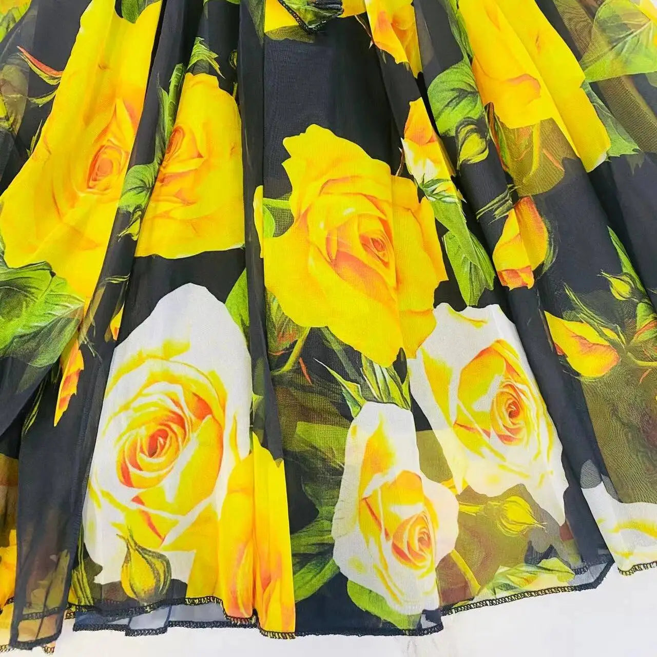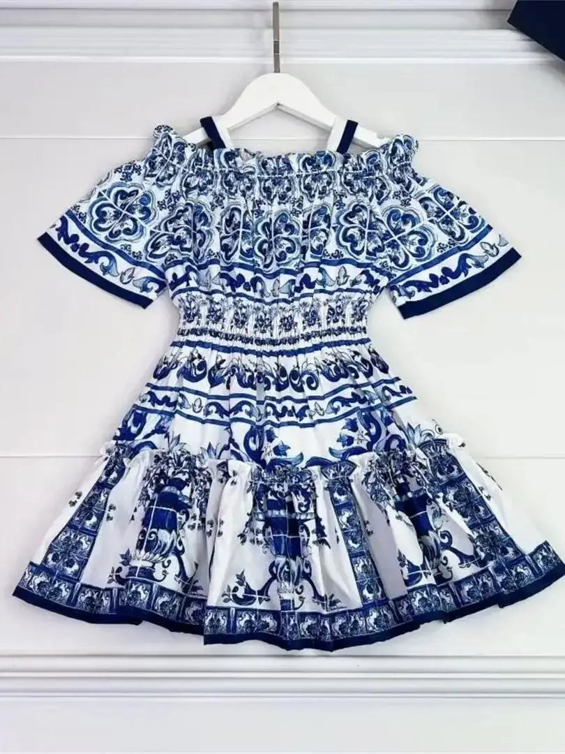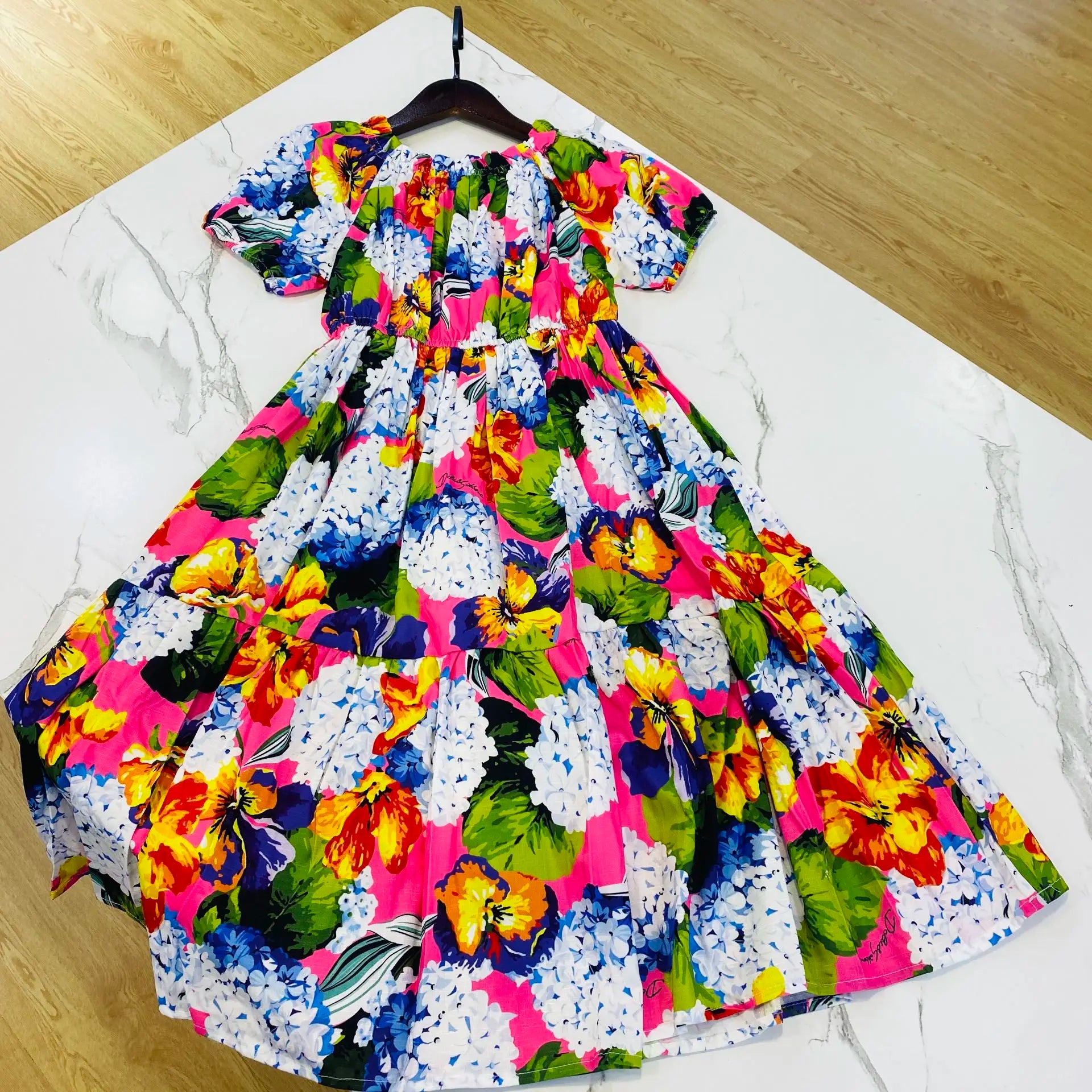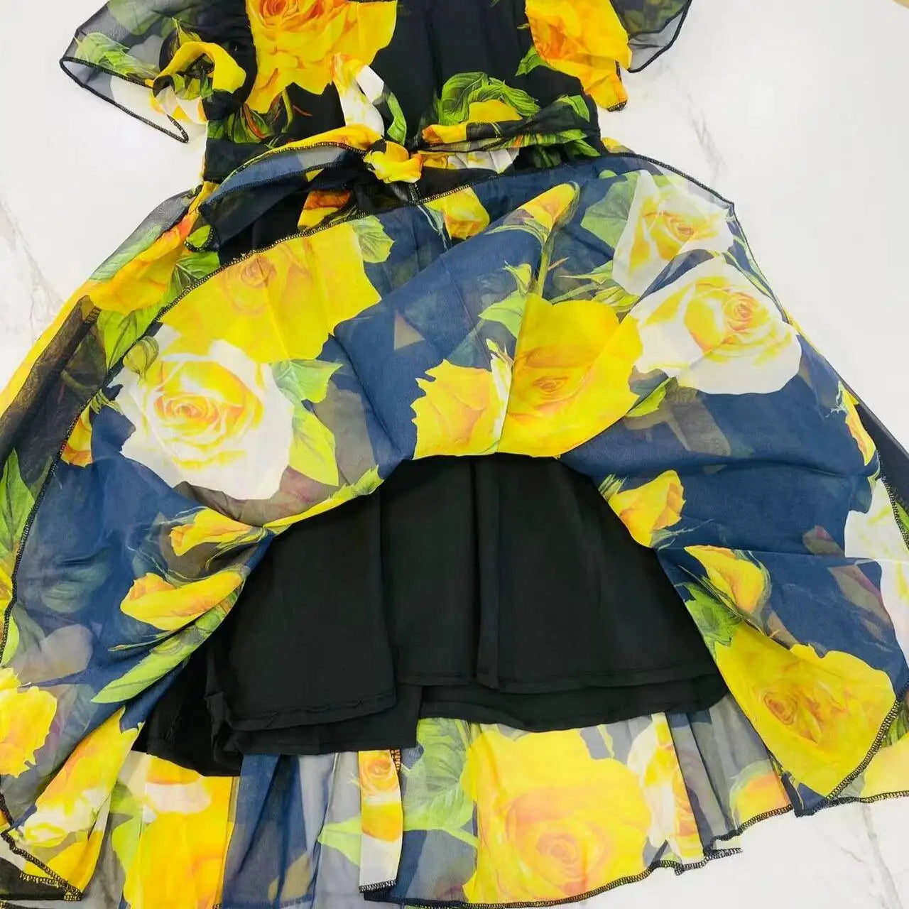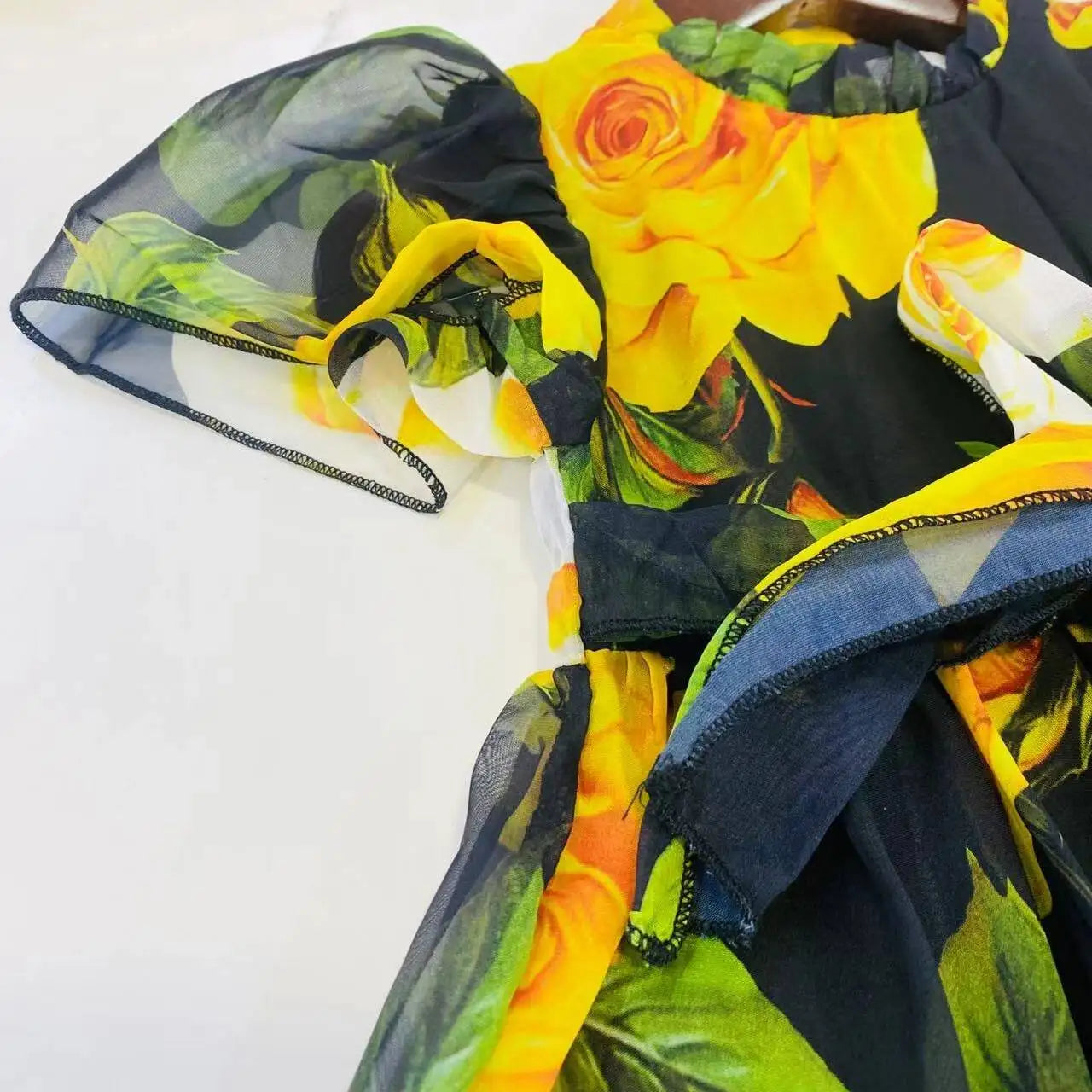 2024 latest style girl clothes green flower dress big girl vacation dress cotton floral printing kids dress