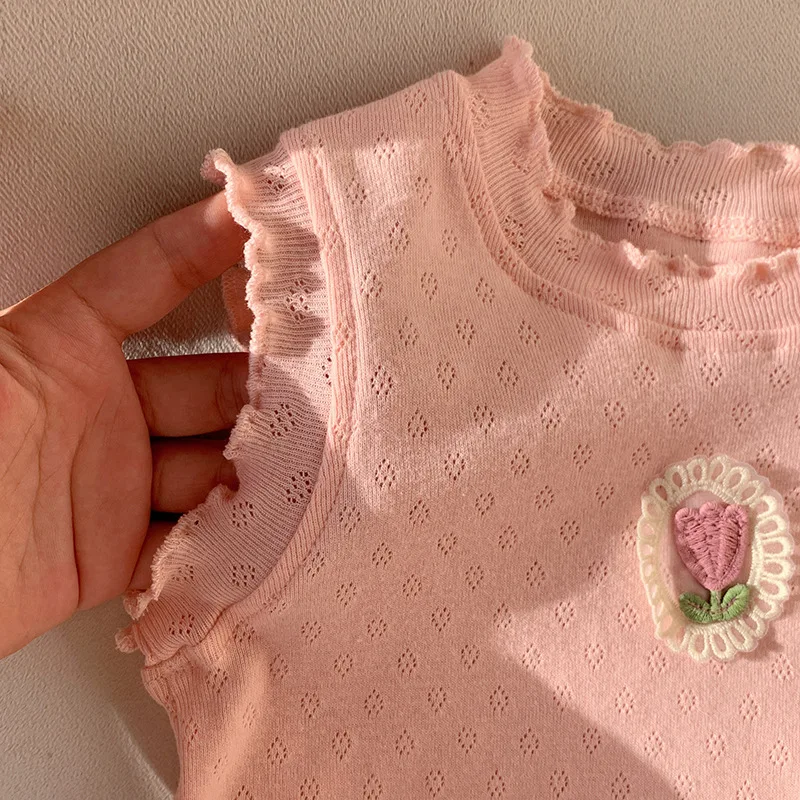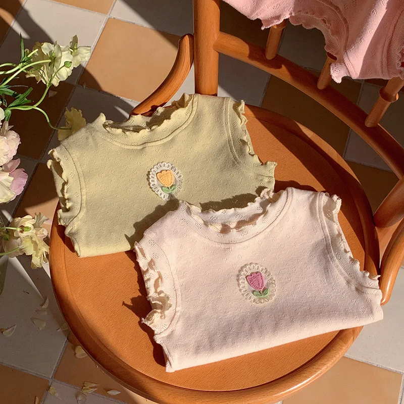 Children's T-Shirts Floral Decoration Jacquard Sleeveless Top Girls Clothes Boutique Outfits for Girls Infant Girl Clothes