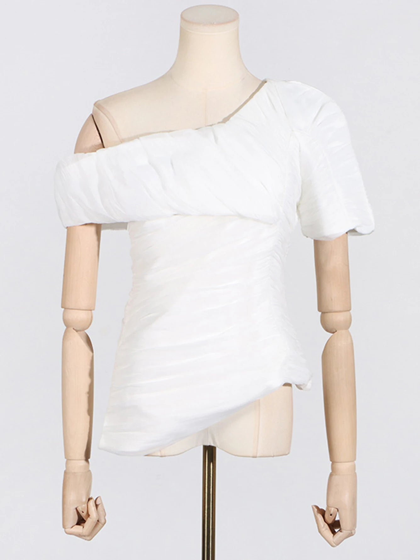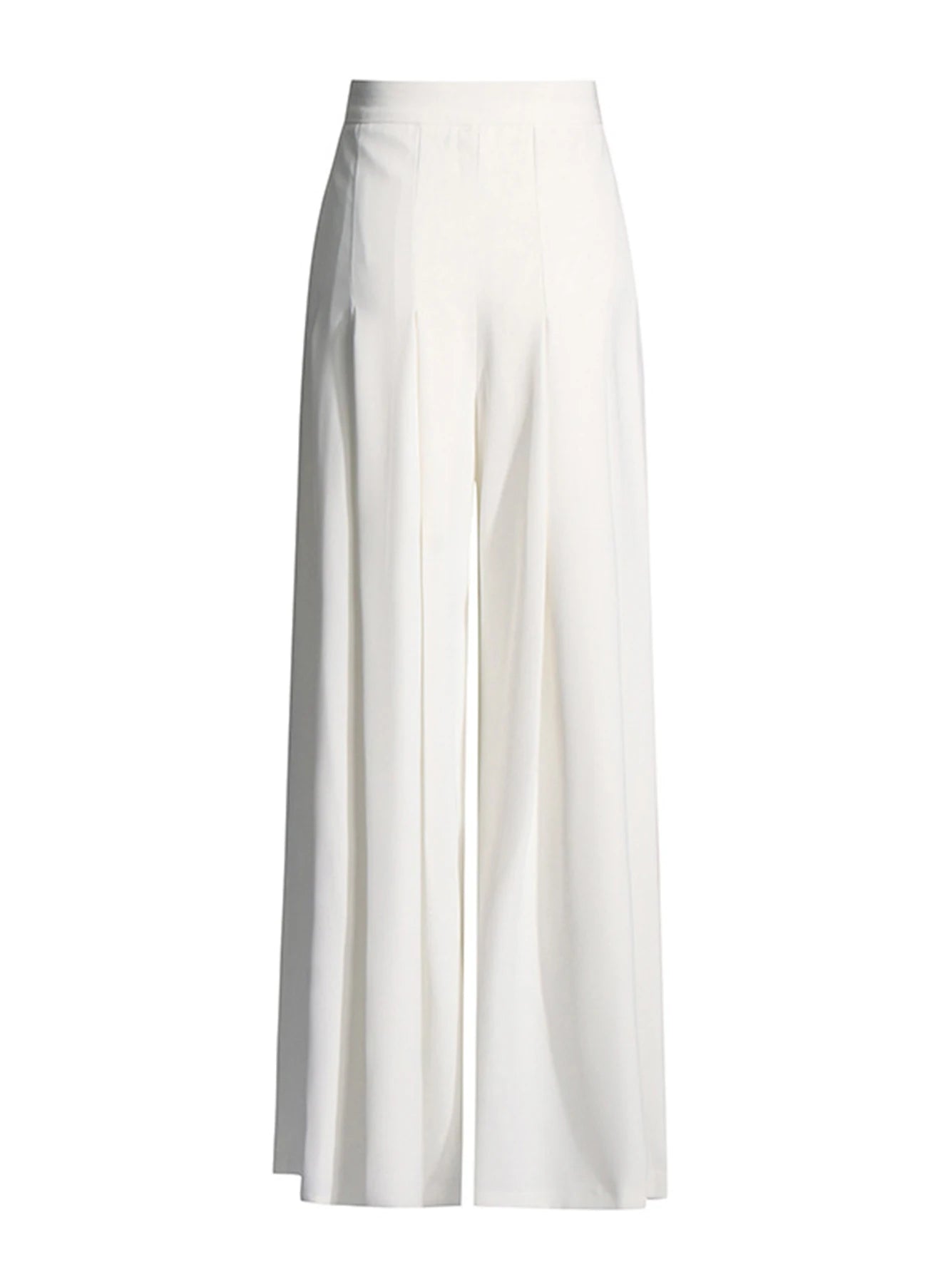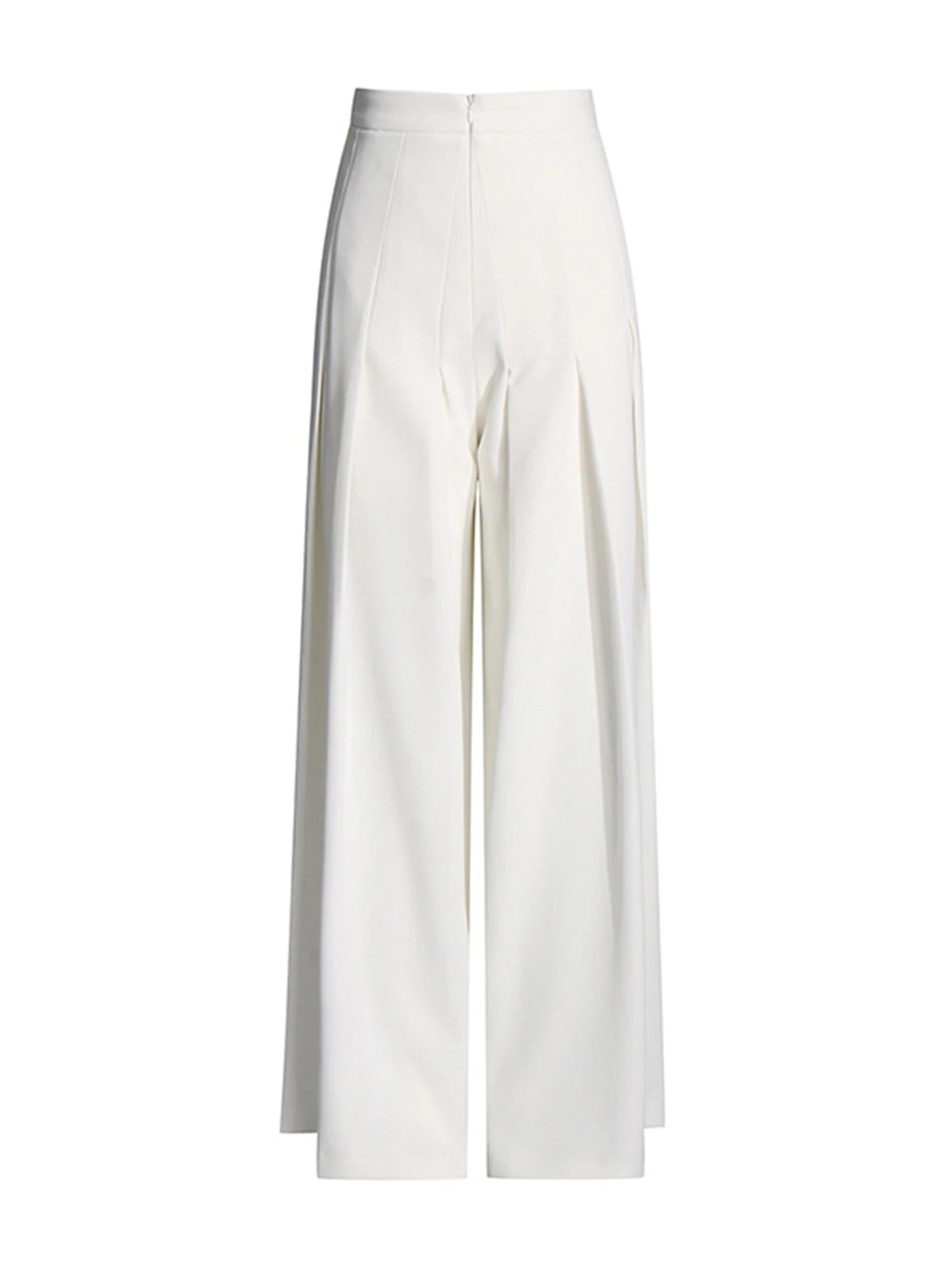 High Quality Summer New White Slim Set 2024 Sexy Short Sleeved Pleated Top+High Waisted Wide Leg Pants Party 2 Two-Piece Set