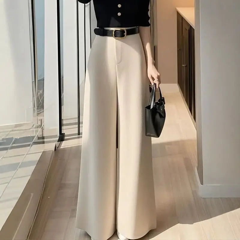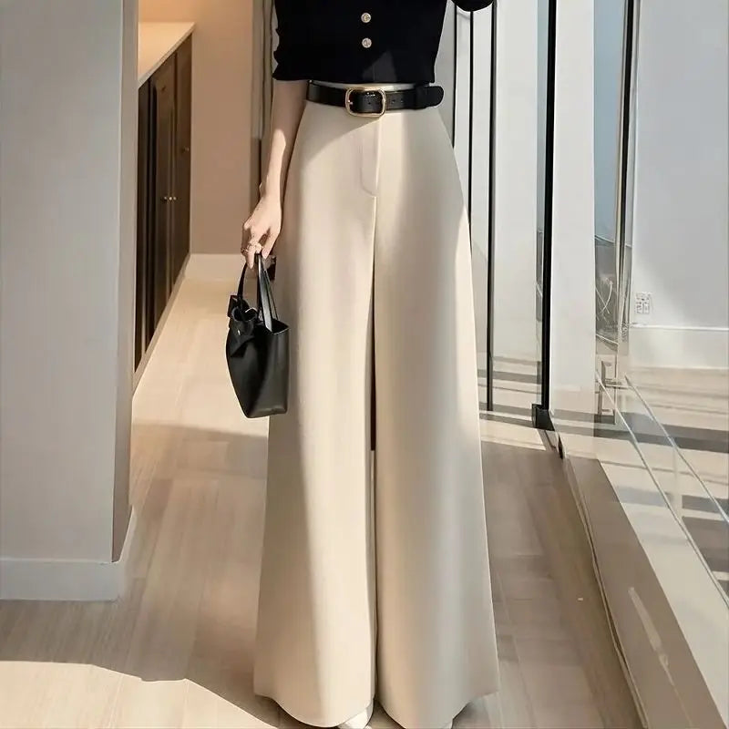 High-waisted Slimming Beige Narrow Wide-leg Pants for Women in Winter Loose Lazy and Relaxed Casual Straight Long Pants