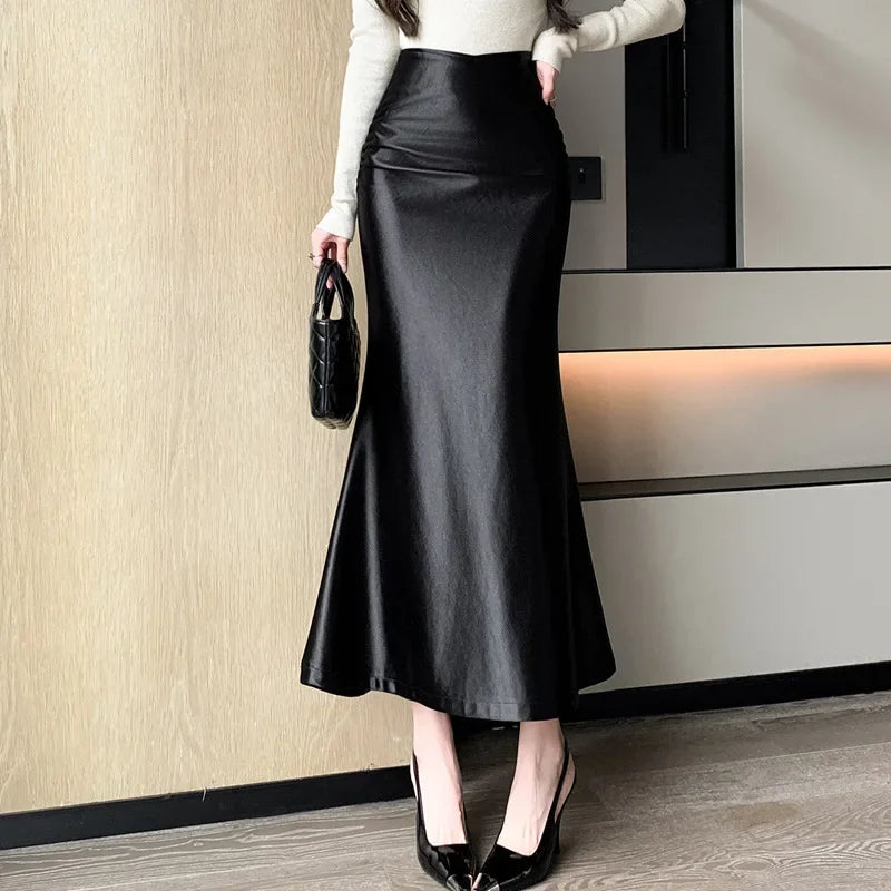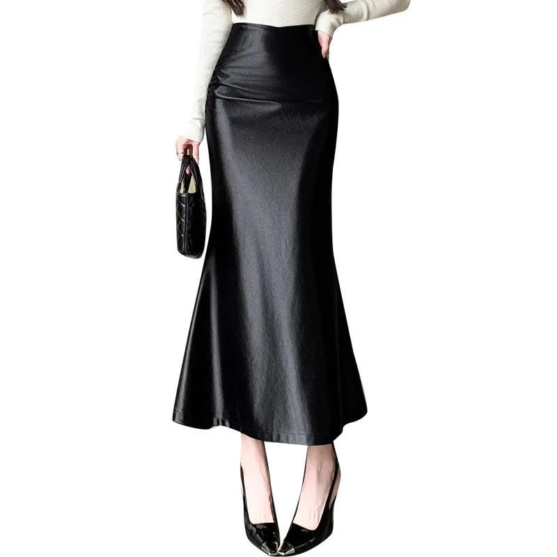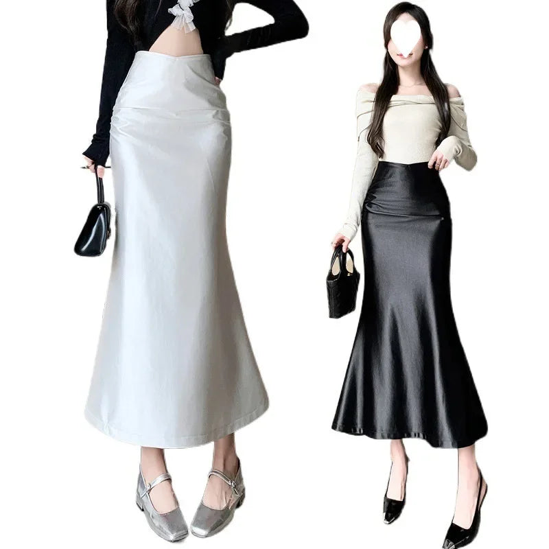 Plus Size Plus Size Silk Satin Drapey High Waist Slimming Fish Tail Skirt Fashionable Spring Summer Lightweight Luxury Women'...