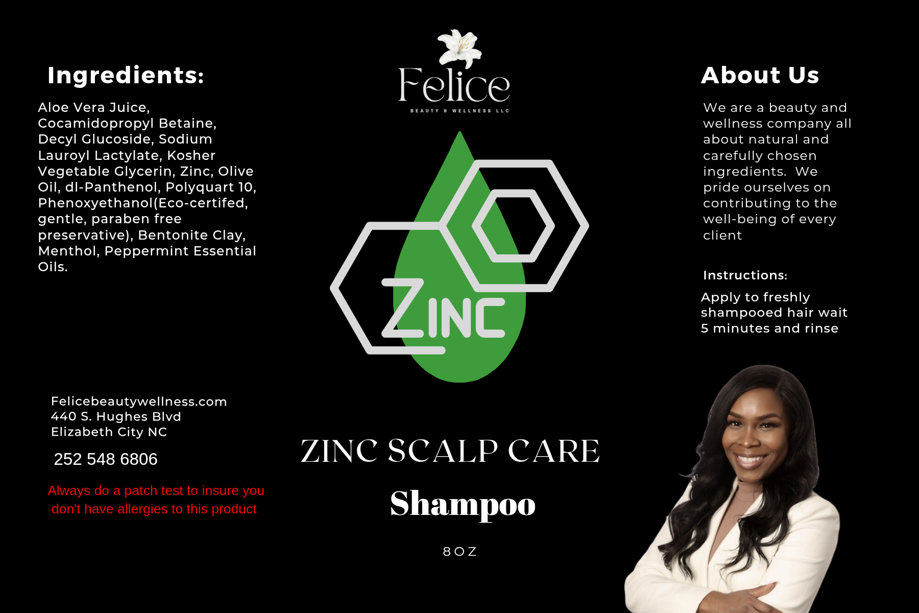 Our Zinc Shampoo is formulated to help cleanse the scalp. Zinc has been used to help cleanse a problematic scalp and aid in creating a healthy scalp! Zinc shampoo contains stimulating menthol, bentonite clay and zinc.